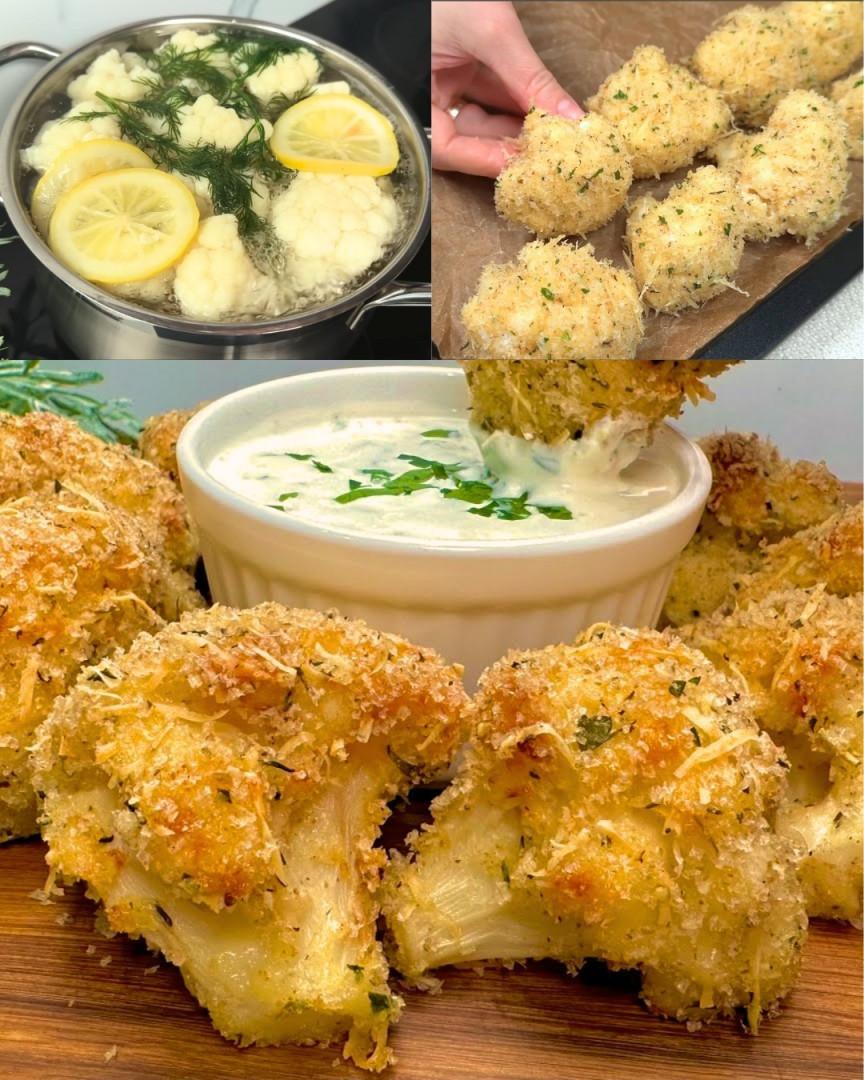3. Dip the cauliflower in flour, then in a beaten egg and coat with the previously prepared breading.