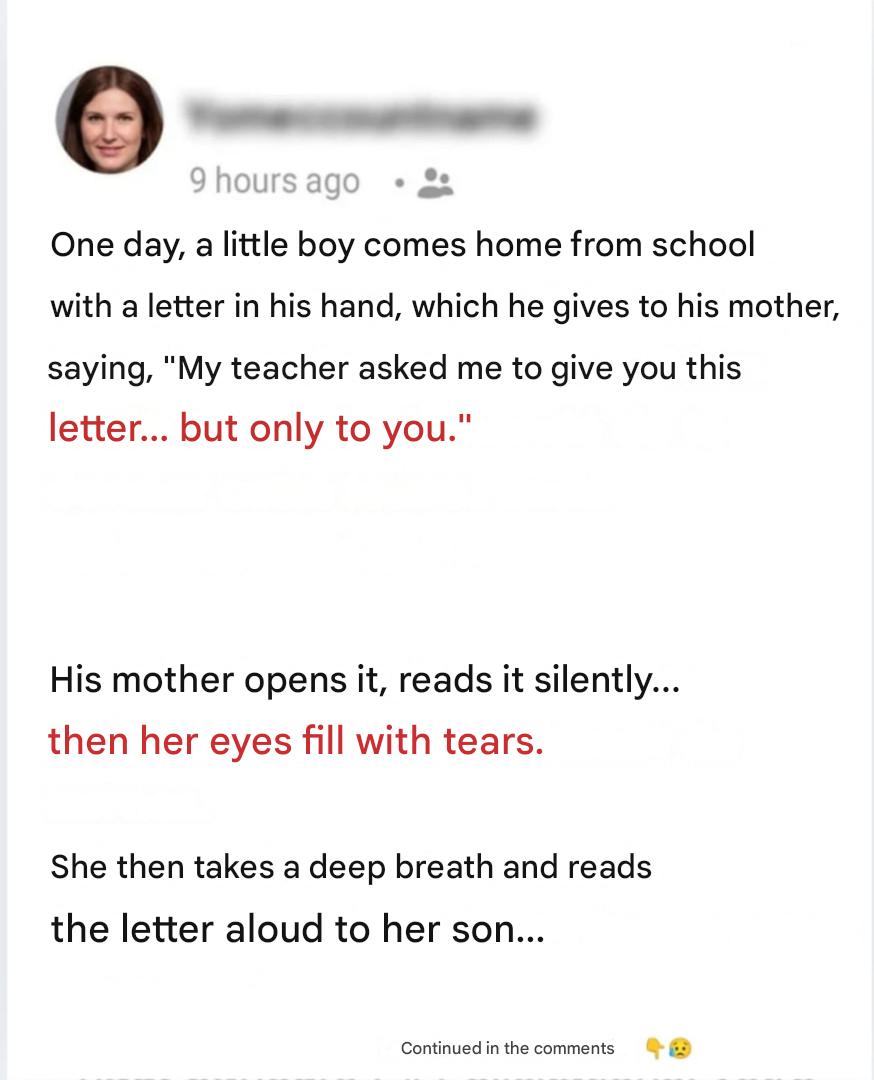 One day, a little boy came home from school with a letter in his hand, which he gave to his mother, saying: "My teacher asked me to give you this letter... but only to you."
