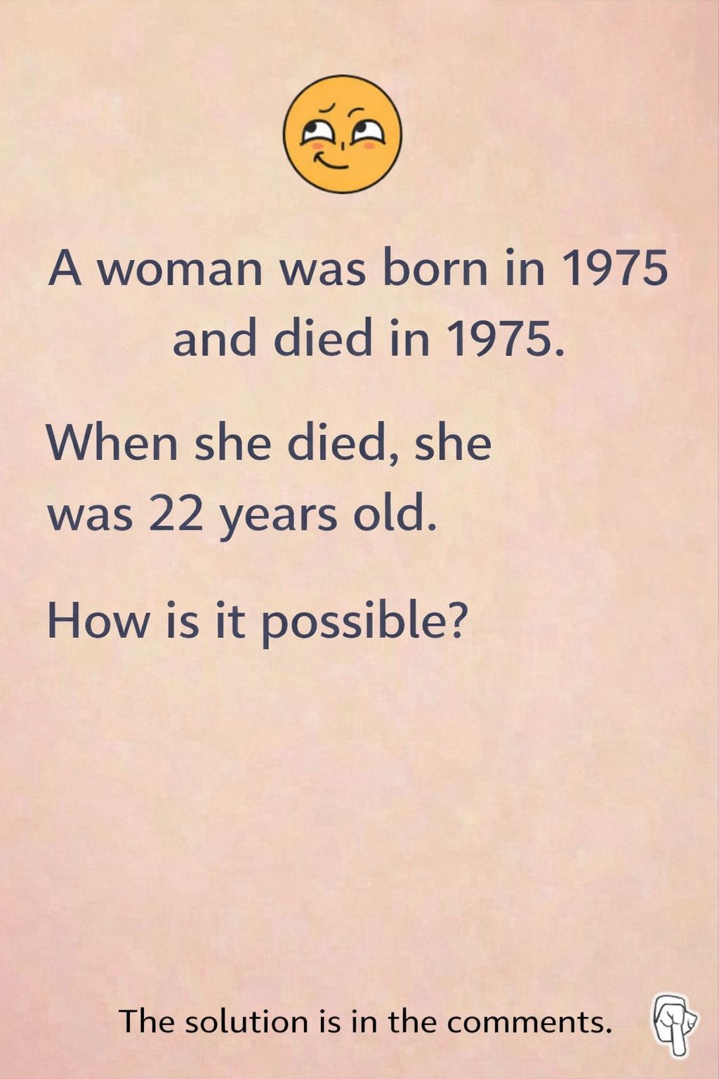 The opening sentence seems illogical: a woman was born and died in 1975, but would she be 22 years old? Unless you're a time traveler (and even then!), it seems impossible. So, of course, we come up with explanations. A typo? A different calendar? We're complicating things... when the answer is much simpler than we think.